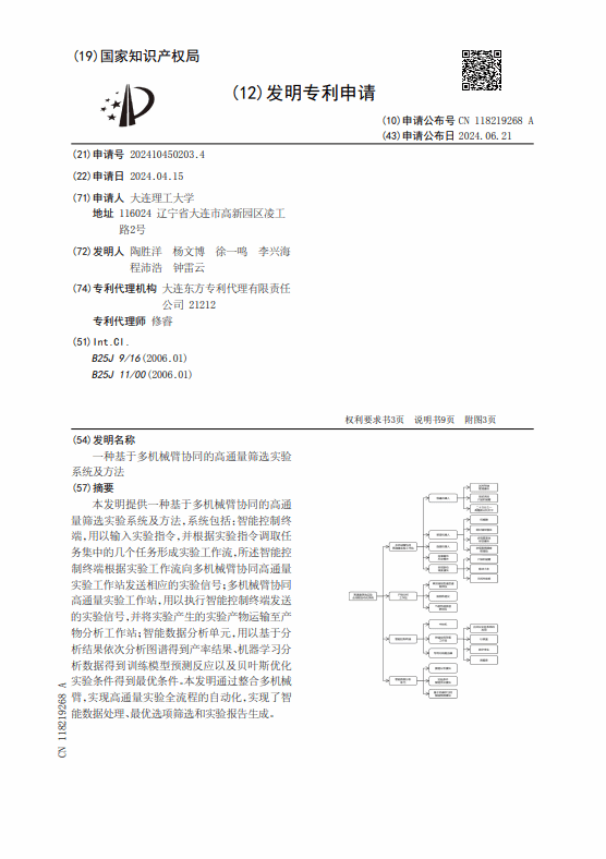 CN118219268A 一种基于多机械臂协同的高通量筛选实验系统及方法