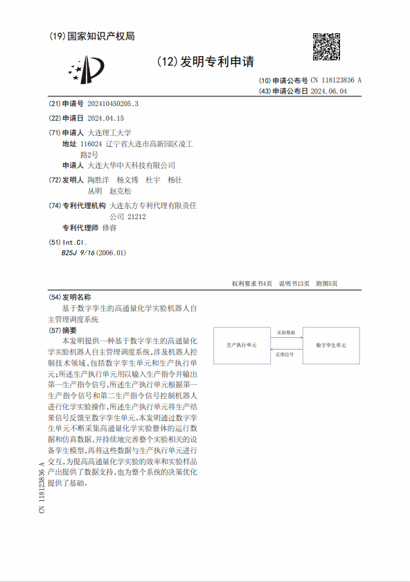 CN118123836A 基于数字孪生的高通量化学实验机器人自主管理调度系统