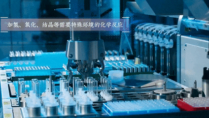 Big Kahuna 除了全面自动化外,还配备了一些特殊的模块。例如,在药物分子筛选中,化合物结晶是一种常用的提纯方式。Big Kahuna中配备了通量结晶模块,可以将带有目标产物的溶液自动分配到结晶板上通过蒸发溶剂实现批量结晶。另外,该设备还配备了高温,高压通气模块,可以实现在一些特定的温度压力和反应气体的条件下的反应。